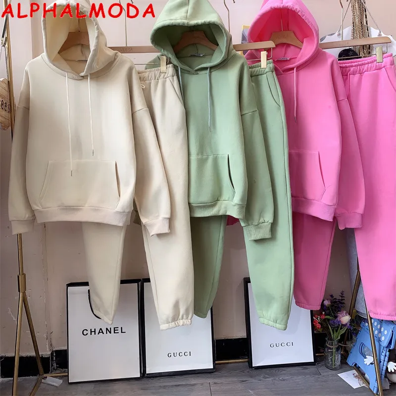 ✅ ALPHALMODA 2020 зима Новая коллекция для женщин конфеты Цвет модный флисовый спортивный костюм толстый свитшот и штаны, для маленьких девочек, Пов...