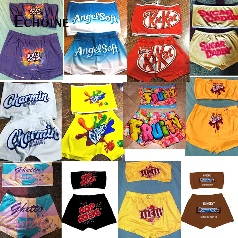 ✅ Echoine для женщин пикантные 2 комплект из двух предметов с принтом ТРУБА Топ байкерские шорты костюм облегающие костюмы, комплект спортивной о...