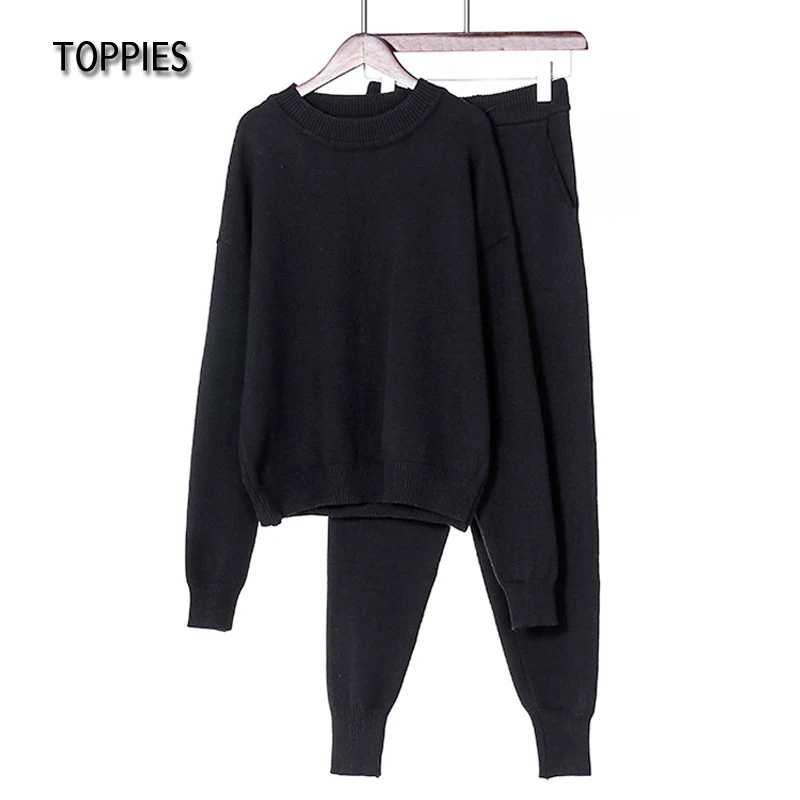 ✅ Toppies 2020 Зимний вязаный комплект из двух предметов, женские спортивные костюмы с высокой талией, брюки-карандаш, наряды для женщин