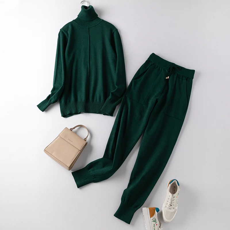 ✅ Женский свитер, комплект, водолазка, пуловеры + длинные штаны, 2 предмета, спортивные костюмы для весны и осени, женские трикотажные брюки + дж...