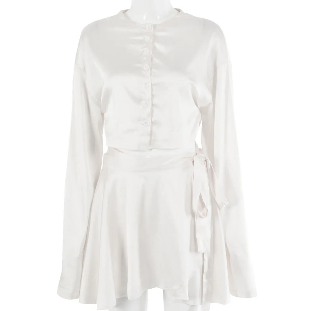 ✅ Женский атласный комплект FANTOYE, комплект из двух предметов, элегантный короткий топ с длинным рукавом и юбка, повседневный белый укороченны...