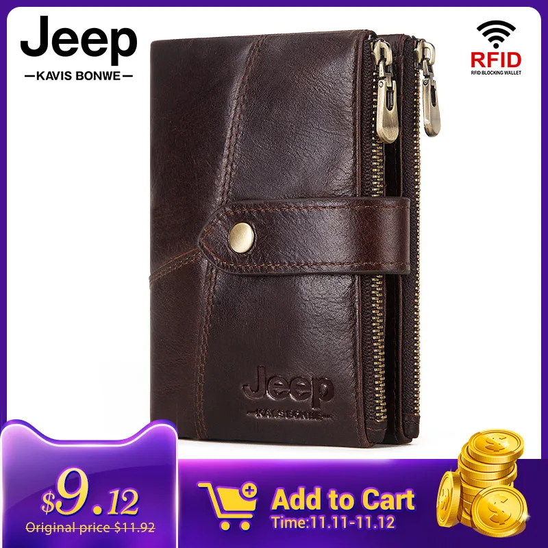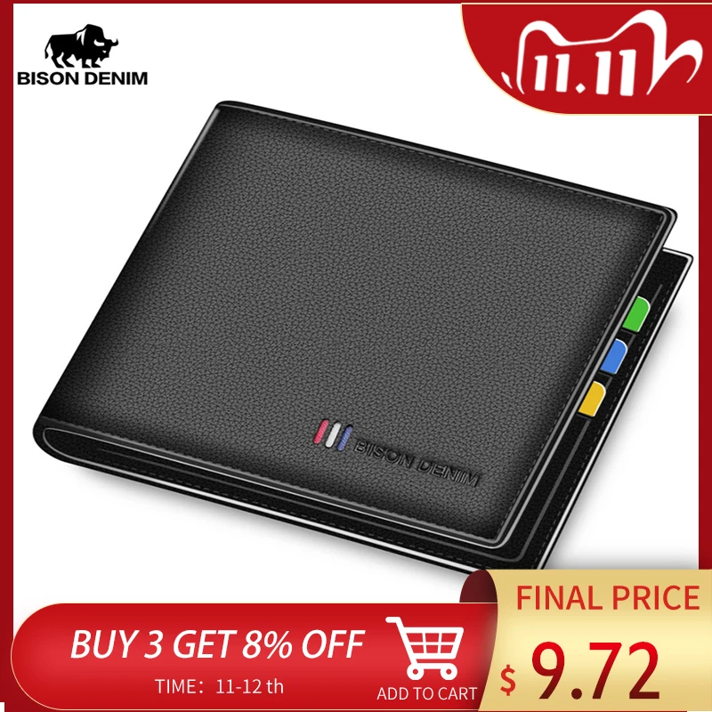✅ Мужской кошелек BISON DENIM, кошелек из 100% коровьей кожи, модный двойной держатель для карт, RFID блокирующий мужской короткий кошелек, высокое качество, N4475