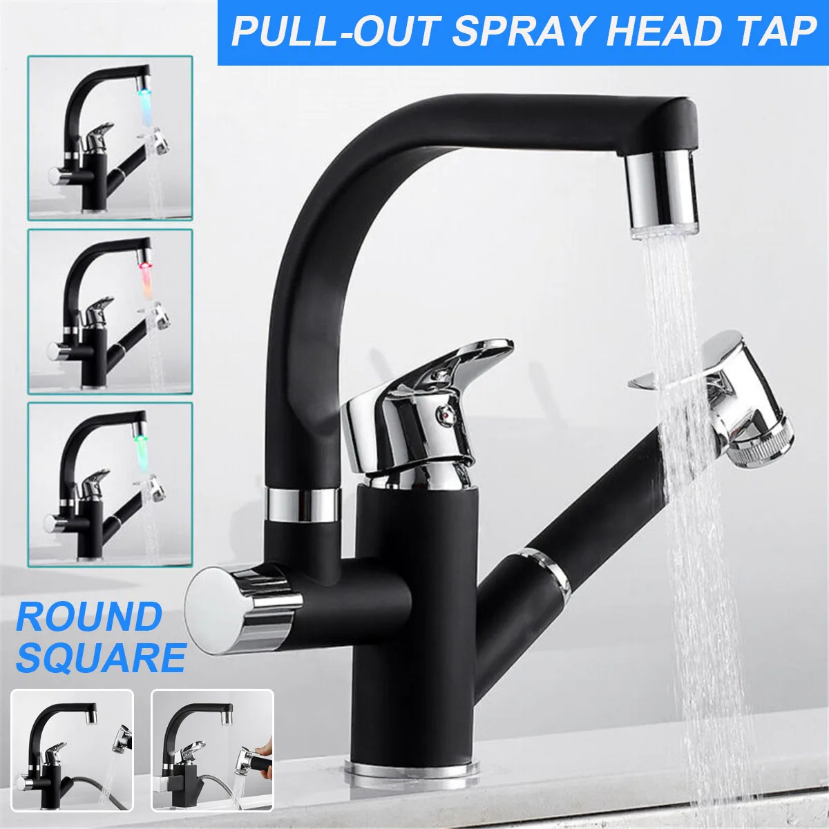 ✅ Новый хромированный черный хромированный выдвижной спрей кухонный кран для раковины 360 Вращающийся носик с одной ручкой Смеситель кран для раковины