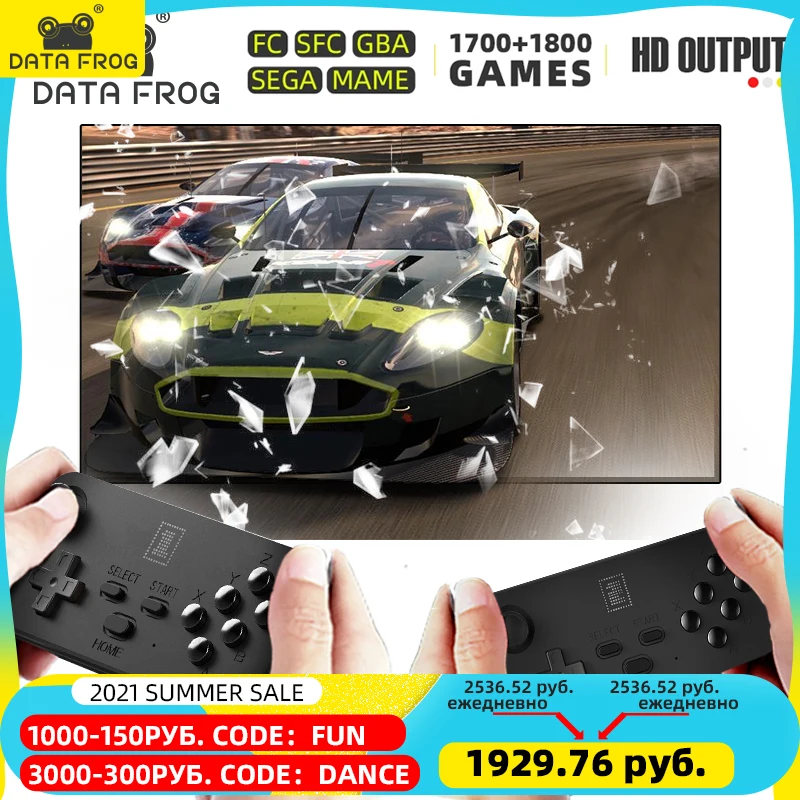 ✅ Игровая Ретро консоль Data Frog 4K TV 1700 + Ретро игры для FC/SFC/GBA/SEGA/MAME HD Беспроводная ручная приставка 6 клавиш 2 джойстика