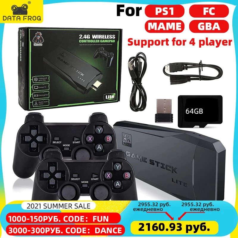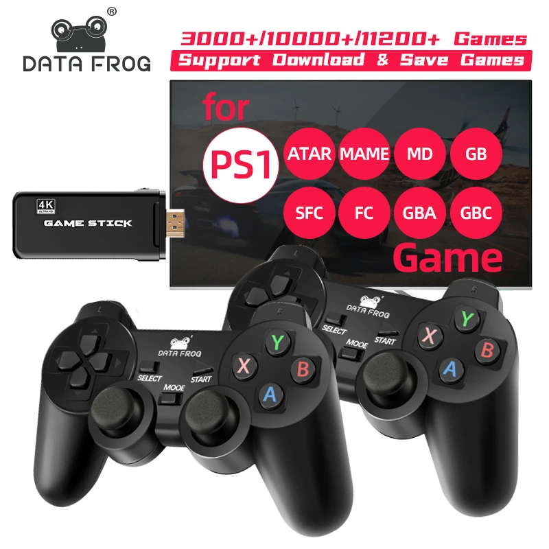 ✅ Игровая консоль DATA FROG 4K HD, 2,4 ГГц, два беспроводных контроллера для PS1/GBA, Классическая Ретро-консоль для ТВ, 64 ГБ, 10000 игр
