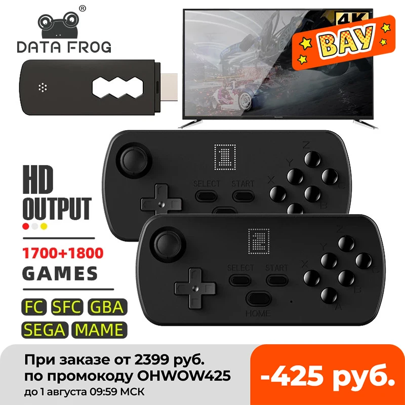 ✅ USB Беспроводная портативная ТВ-видео игровая консоль DATA FROG построенная в 1700 + классические игры 4K Ретро игровая консоль поддержка GBA/MAME