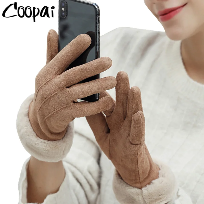 ✅ Женские зимние перчатки для сенсорного экрана 2020, женские замшевые пушистые теплые перчатки с закрытыми пальцами, женские зимние уличные с...