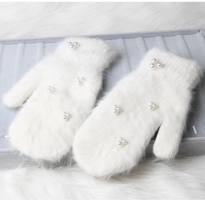 ✅ Варежки женские, зимние, из кроличьего меха, с жемчужинами