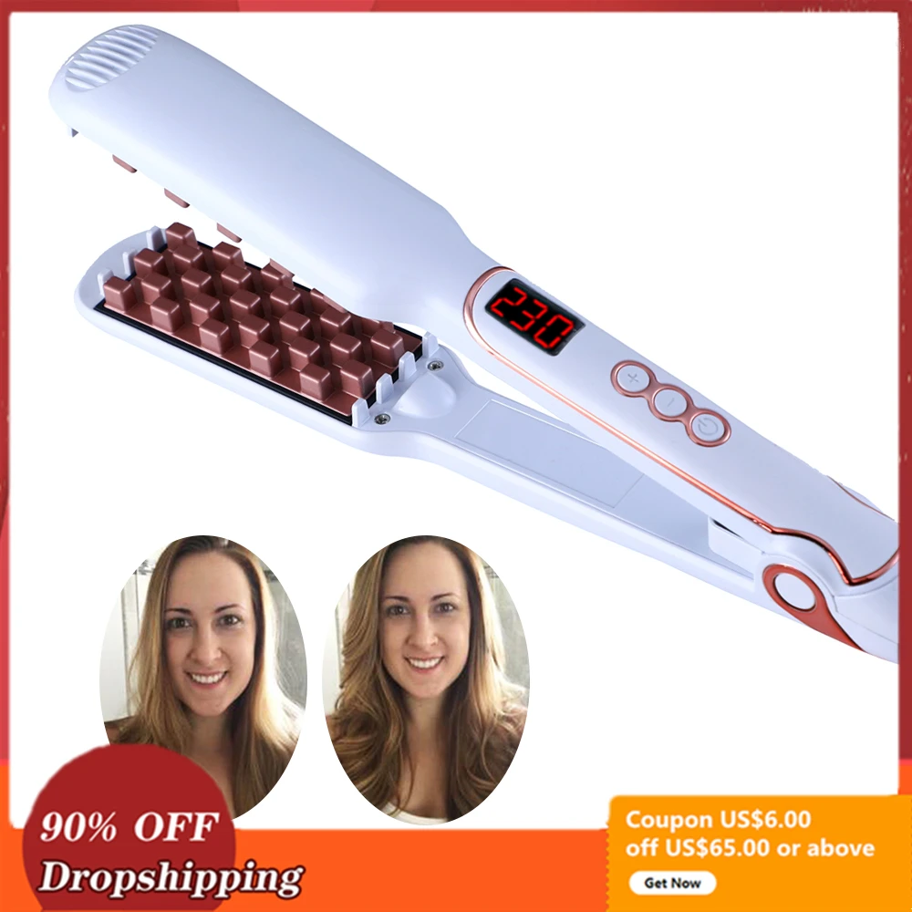 ✅ 2in1 110v-220v Керамический Автоматическая выпрямитель для волос Быстрый нагрев удлиненный Многофункциональный выпрямитель для волос для сухих ...