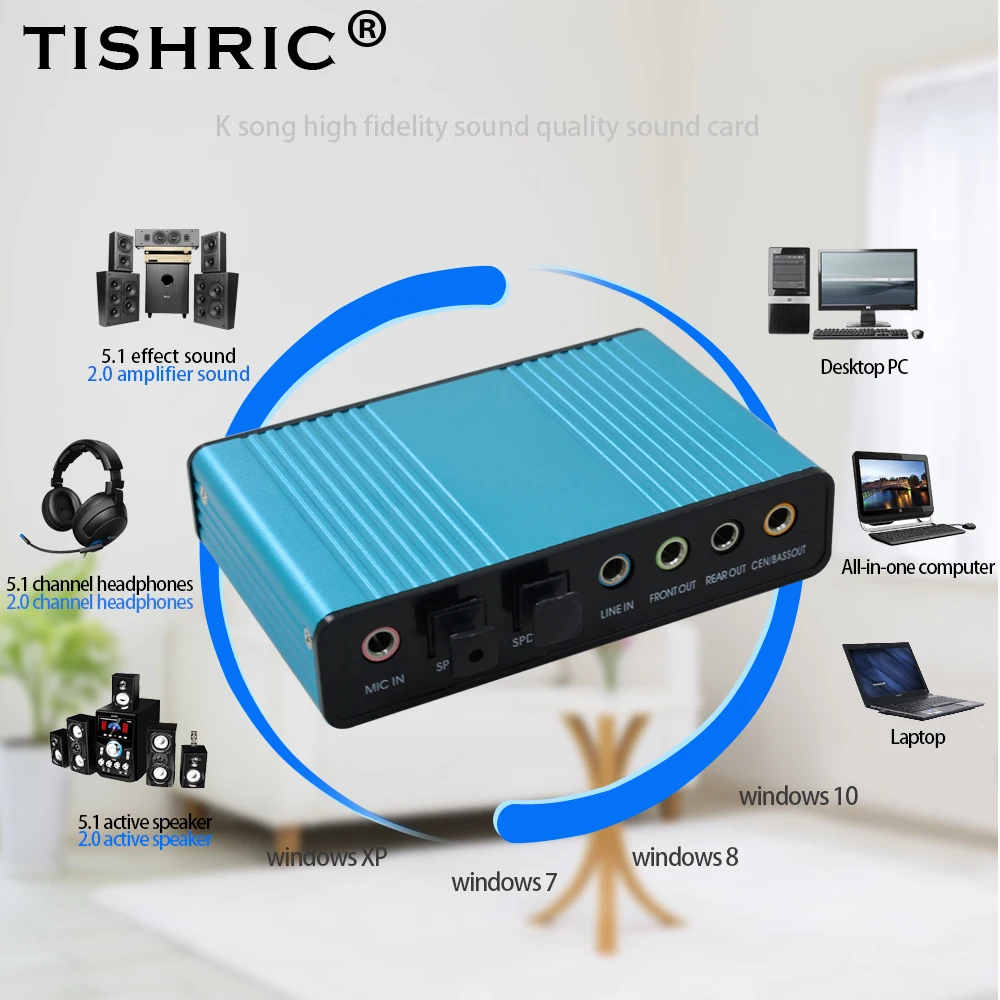 ✅ Оптический аудиоадаптер TISHRIC, внешняя звуковая карта 5,1 USB для наушников 3,5 мм, стерео микрофон, линия Spdif для ПК, компьютера, ноутбука