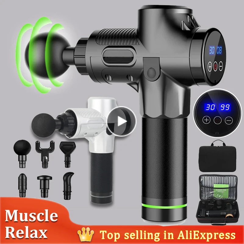 ✅ ЖК-дисплей массажный пистолет для спины шеи Глубокий тканевый Массажер для мышц облегчение боли тела терапия Электрический после тренировки Восстанавливающий массажный пистолет