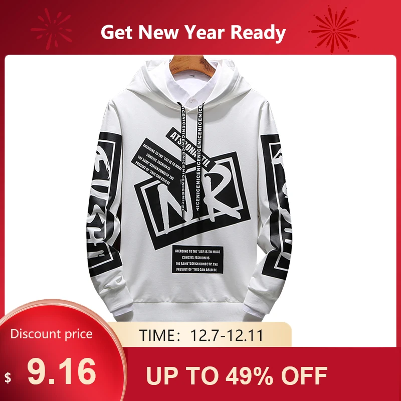 ✅ Новая повседневная черно-белая толстовка с капюшоном для мужчин в стиле хип-хоп, уличная одежда с буквенным принтом, свитшоты для скейтборд...