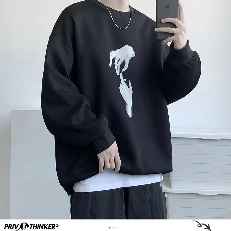 ✅ Мужская Уличная Толстовка Privathinker, Повседневная Толстовка большого размера с принтом в Корейском стиле, Осень-зима 2020, новая Теплая мужская одежда
