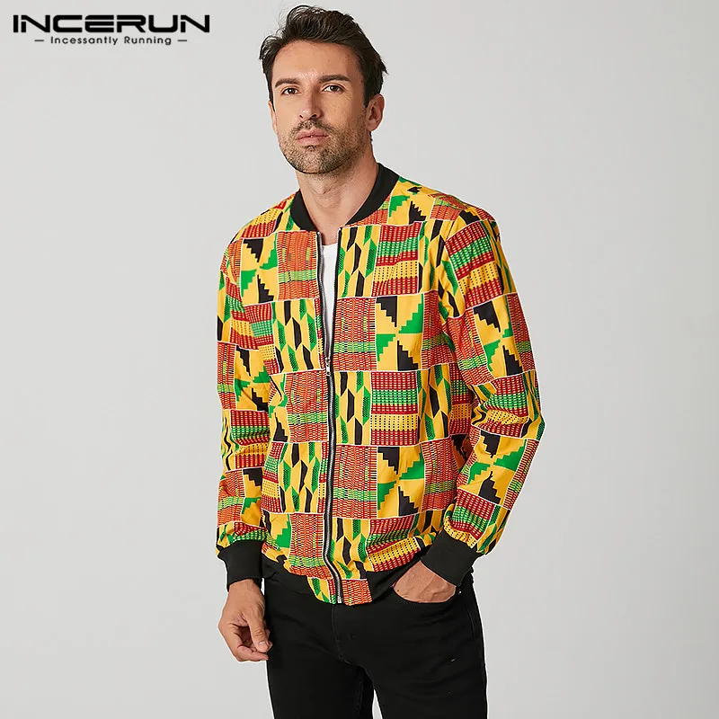 ✅ Осенние мужские куртки INCERUN 2020, уличная одежда с 3D принтом и длинным рукавом, повседневные пальто на молнии, шикарная верхняя одежда в этниче...