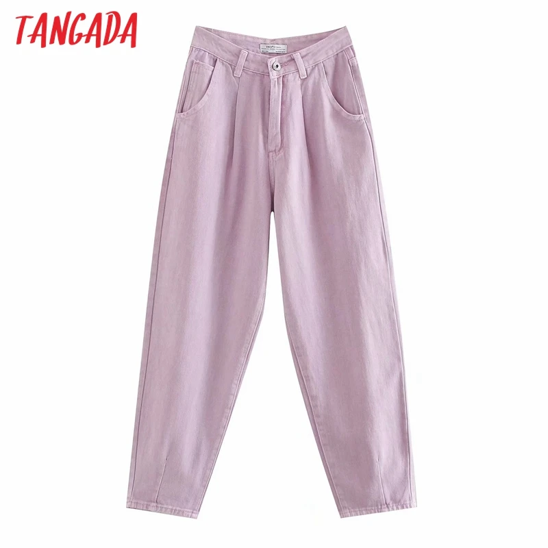 ✅ Женские фиолетовые джинсы Tangada, Новое поступление 2020, длинные брюки с карманами, на молнии, Свободные повседневные женские джинсовые брюки ...