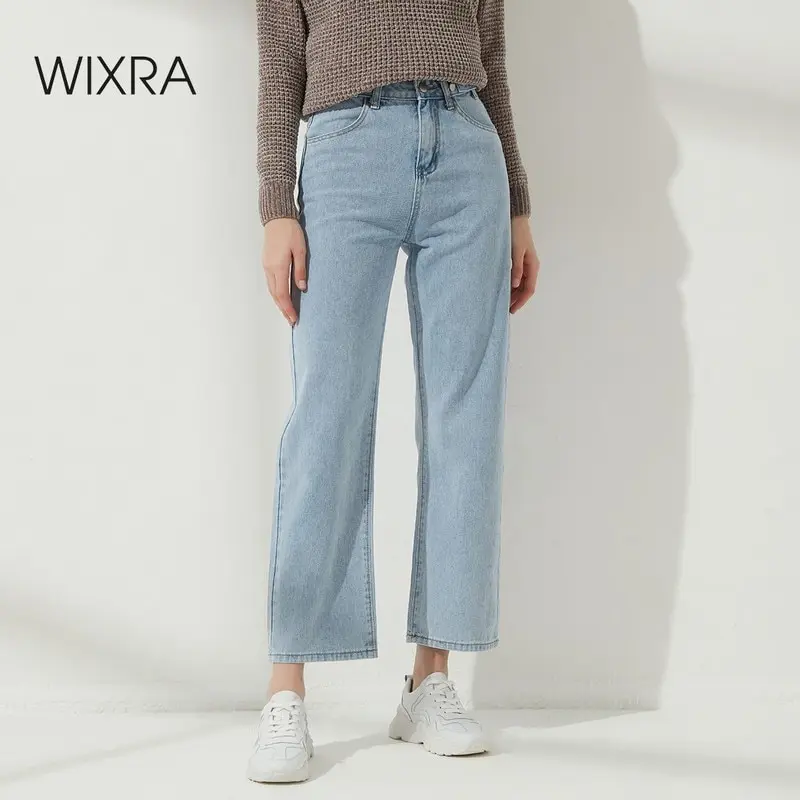 ✅ Женские классические прямые джинсовые длинные брюки Wixra, повседневные джинсы с высокой талией и пятью карманами на пуговицах