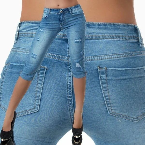 ✅ Женские джинсы средней длины, летние облегающие джинсовые брюки для мам, винтажные потертые Новые повседневные джинсовые брюки с высокой т...