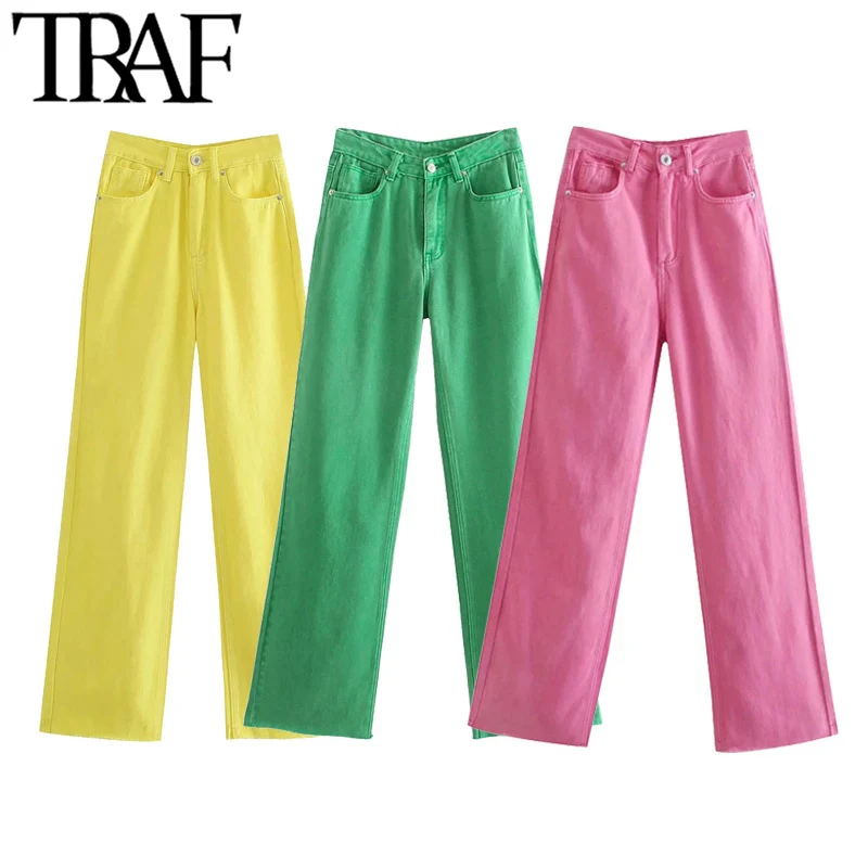 ✅ TRAF Женская шикарная модная одежда с героями игры «пять карманов цветные широкие джинсы в винтажном стиле с завышенной талией, с застежкой-молнией женские джинсовые брюки Mujer