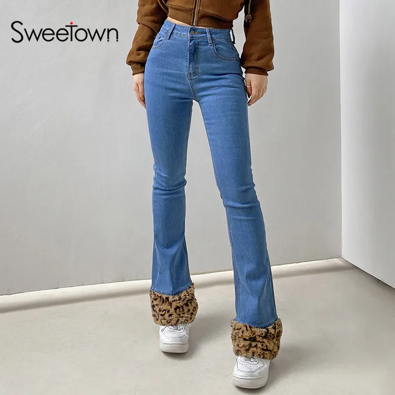 ✅ Sweetown лоскутное леопарда, свободный крой джинсы Для женщин Винтаж Y2K эстетику 90s Уличная джинсовые штаны с заниженной талией, узкие брюки-кле...