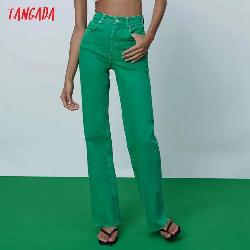 ✅ Женские джинсы с карманами Tangada, зеленые длинные брюки из денима ярких цветов, на пуговицах, 4M156, 2021