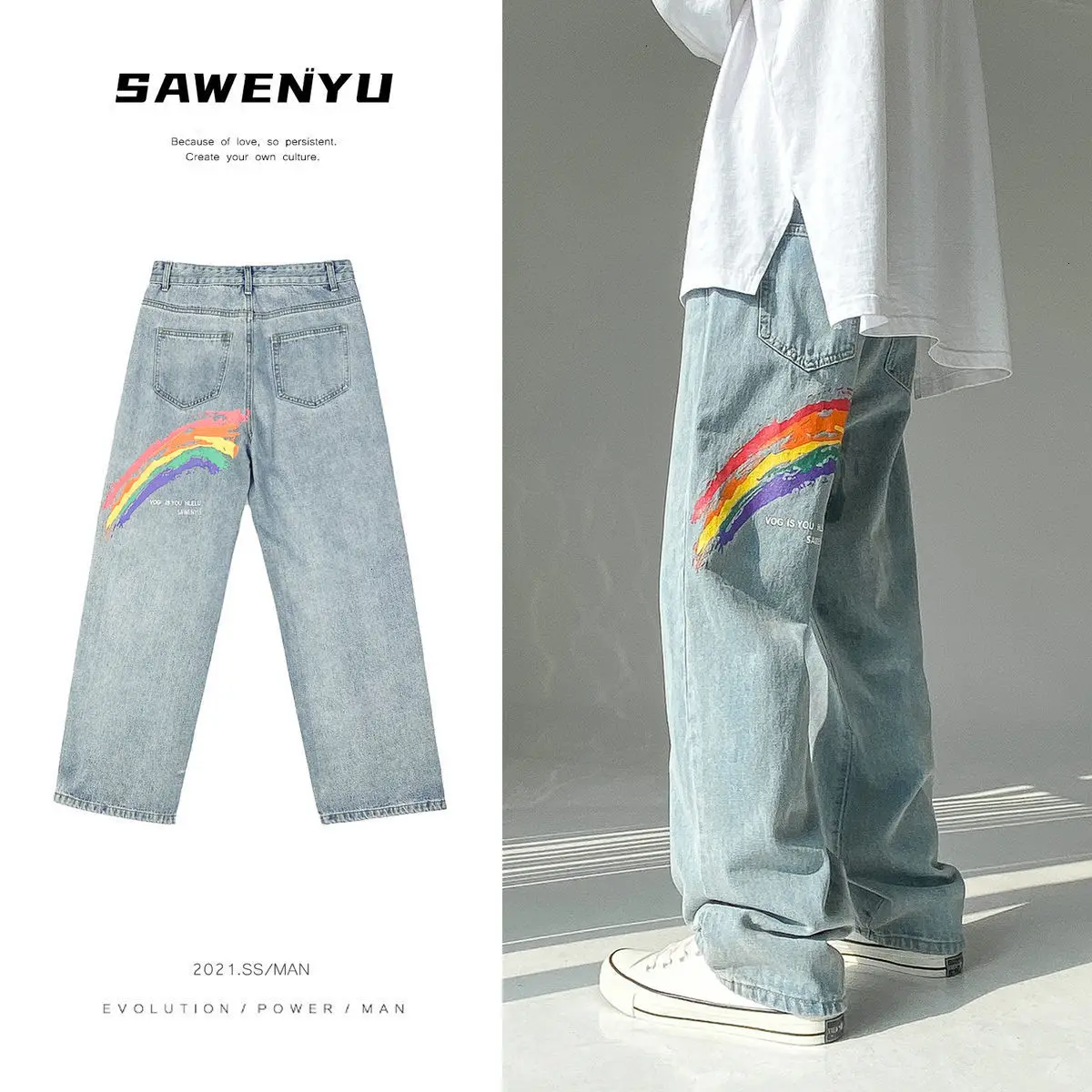✅ Privathinker мужские джинсы с принтом радуги 2021 Модные женские повседневные джинсы оверсайз корейские уличные мужские джинсы