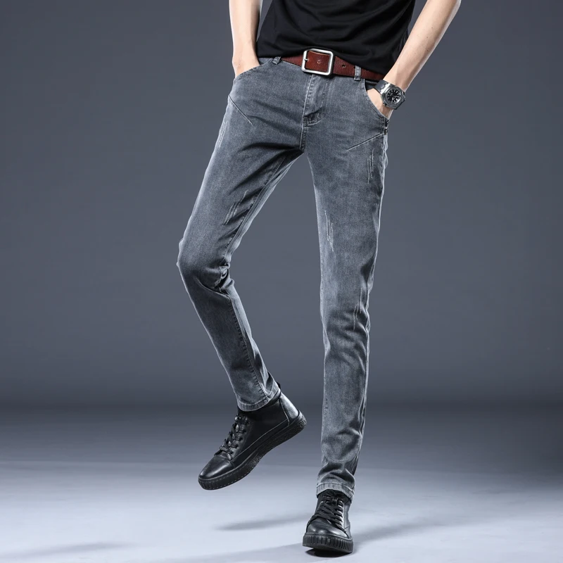 ✅ 2021 летние новые мужские свободные Стрейчевые серые джинсы, модные повседневные Стрейчевые прямые джинсовые брюки, мужской светильник, синий бренд