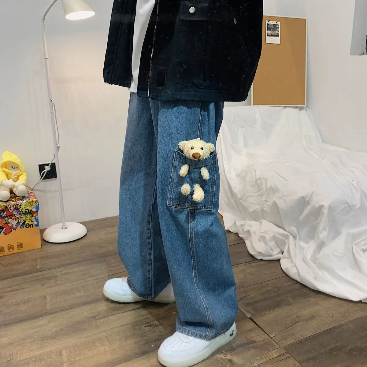 ✅ Privathinker мужские повседневные джинсы большого размера с медведем 2021 Модные женские прямые джинсы корейские уличные мужские джинсы в стиле хип-хоп