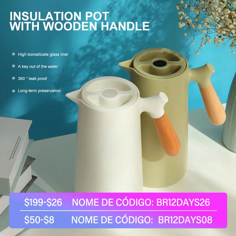 ✅ Изоляционный чайник 1000 мл, бутылка для горячей воды с ручкой в скандинавском стиле, термос большой емкости, съемный чайник, бытовой кофейник