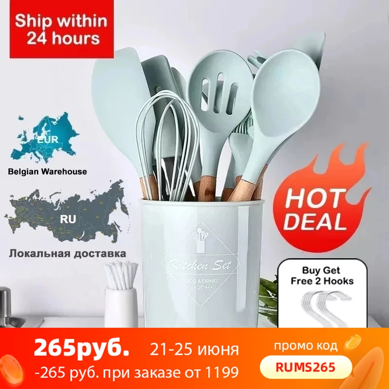 ✅ Силиконовая кухонная утварь, набор кухонной утвари, термостойкая кухонная антипригарная утварь, инструменты для выпечки с ящиком для хранения, инструменты