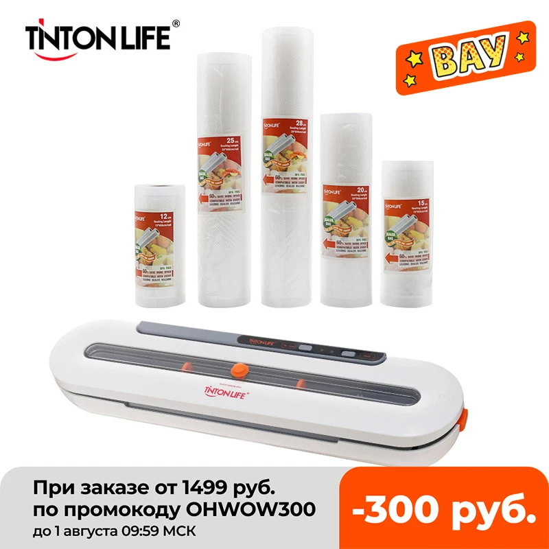 ✅ Пищевой вакуумный упаковщик TINTON LIFE с мешками, пластиковые рулоны 5 размеров, пакеты для кухни, для сохранения свежести еды
