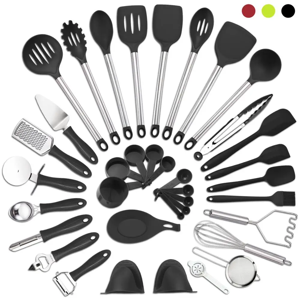 ✅ Набор кухонной утвари 37 шт., кухонные принадлежности, силиконовый и нержавеющая сталь, нейлоновая антипригарная лопатка, набор инструменто...