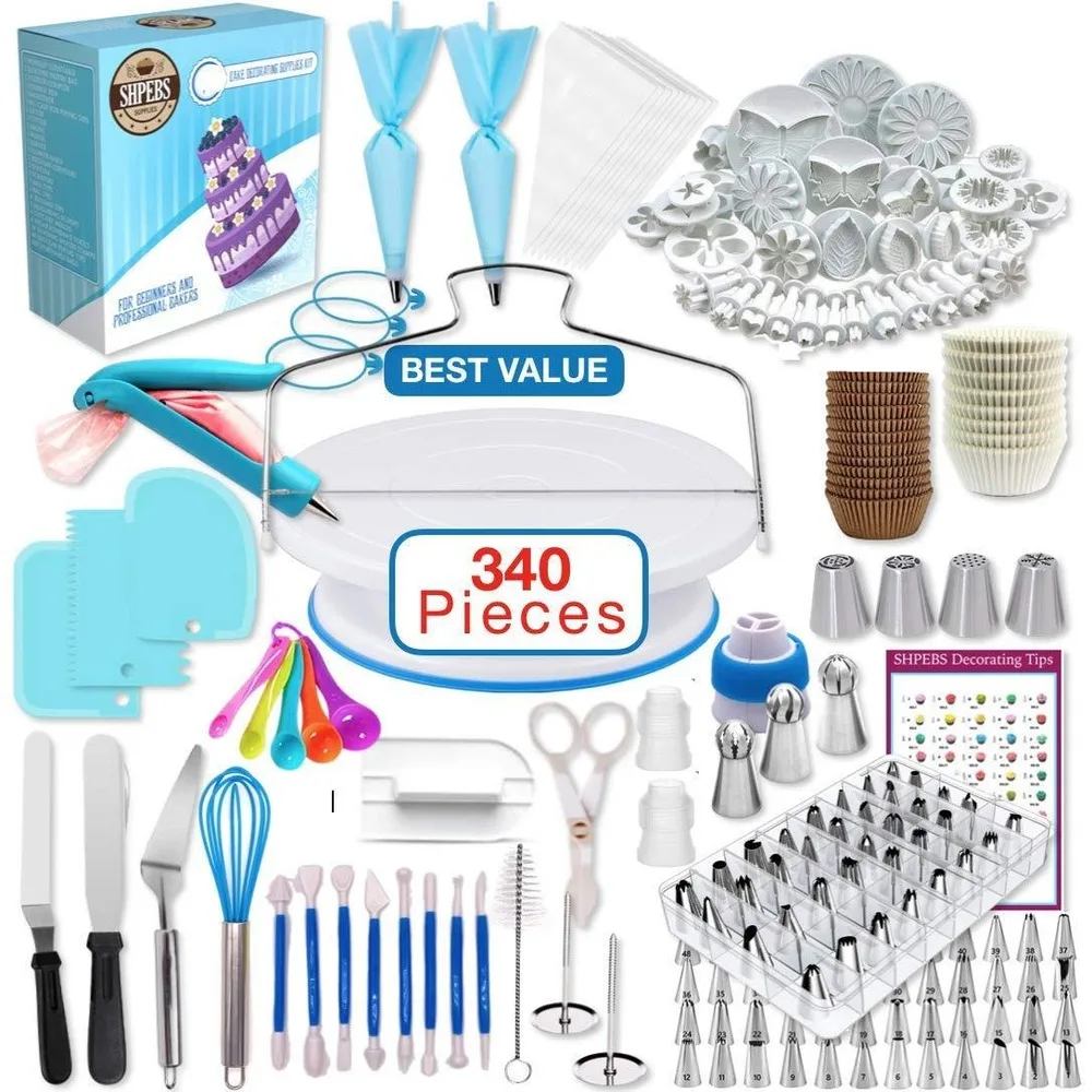 ✅ 340 шт. набор для выпечки инструменты для украшения торта инструменты русский фонарь насадки торт нескользящей Turntable Fondant (сахарная) кухонные ...