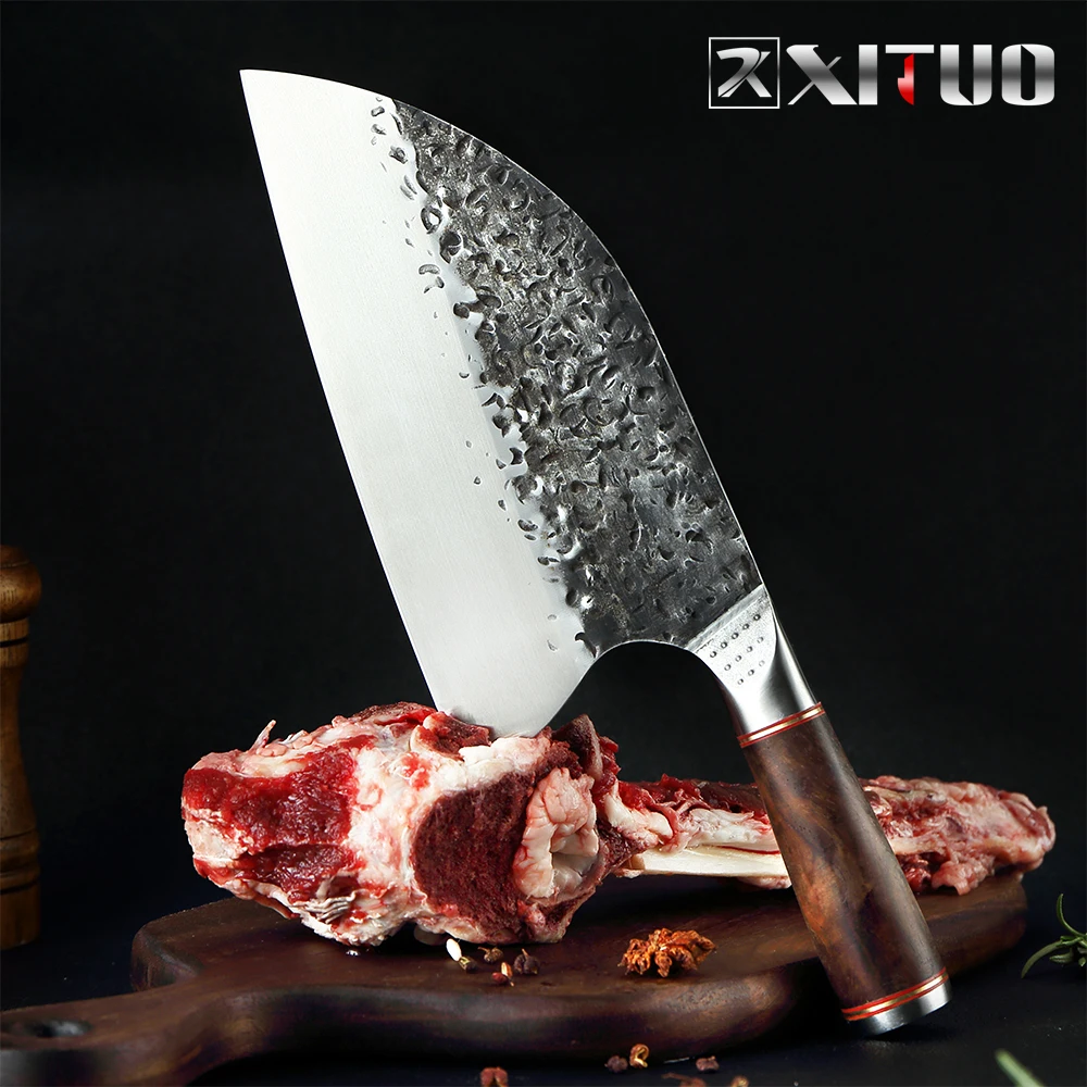 ✅ Нож шеф-повара XITUO, широкий кованый нож мясника ручной работы из высокоуглеродистой стали, плакированный сталью