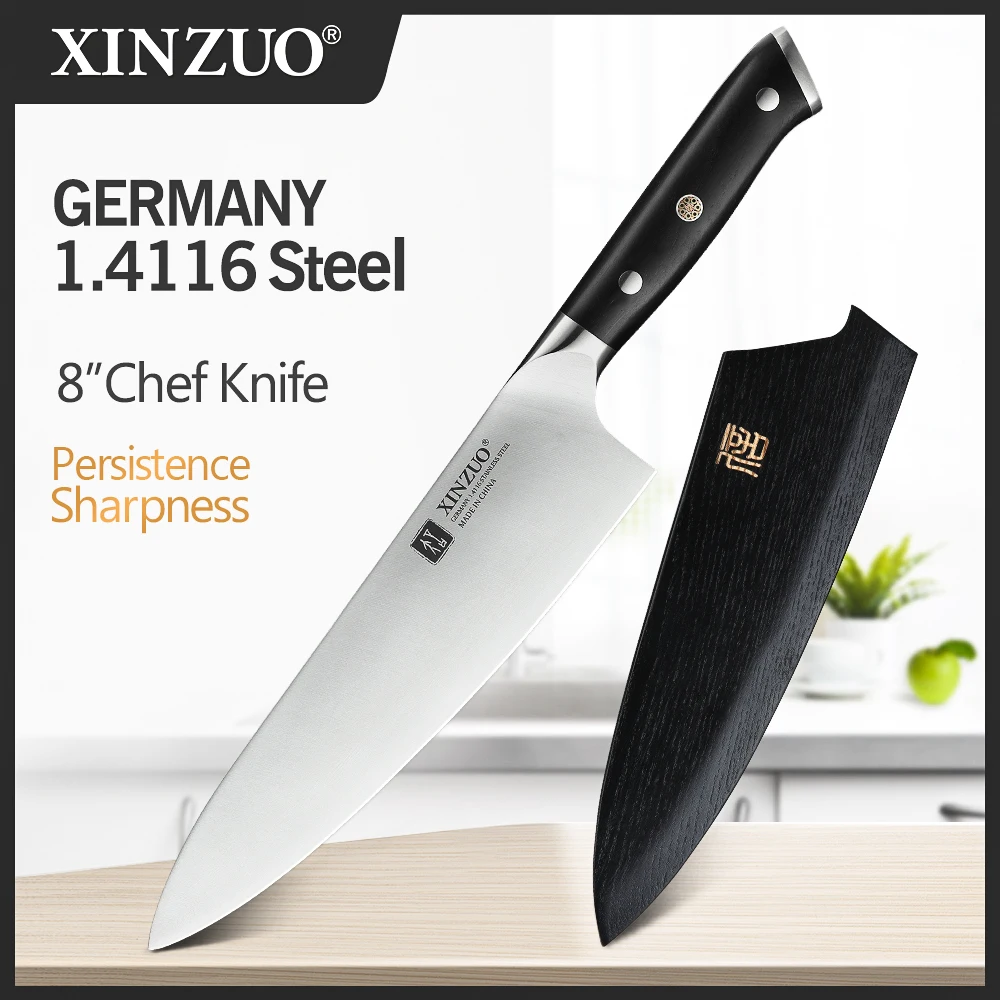 ✅ Нож шеф-повара XINZUO, 8,5 дюйма, Высокоуглеродистый, Din 1,4116, немецкие кухонные ножи из нержавеющей стали для нарезки мяса с черной ручкой