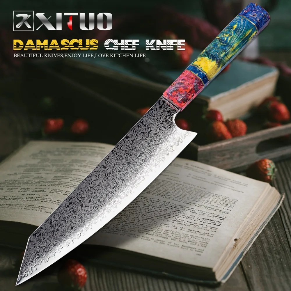 ✅ XITUO дамасский шеф-нож VG10 Профессиональный кухонный нож Мясницкий инструмент для приготовления пищи Изысканная Сливовая заклепка G10 ручка с ...