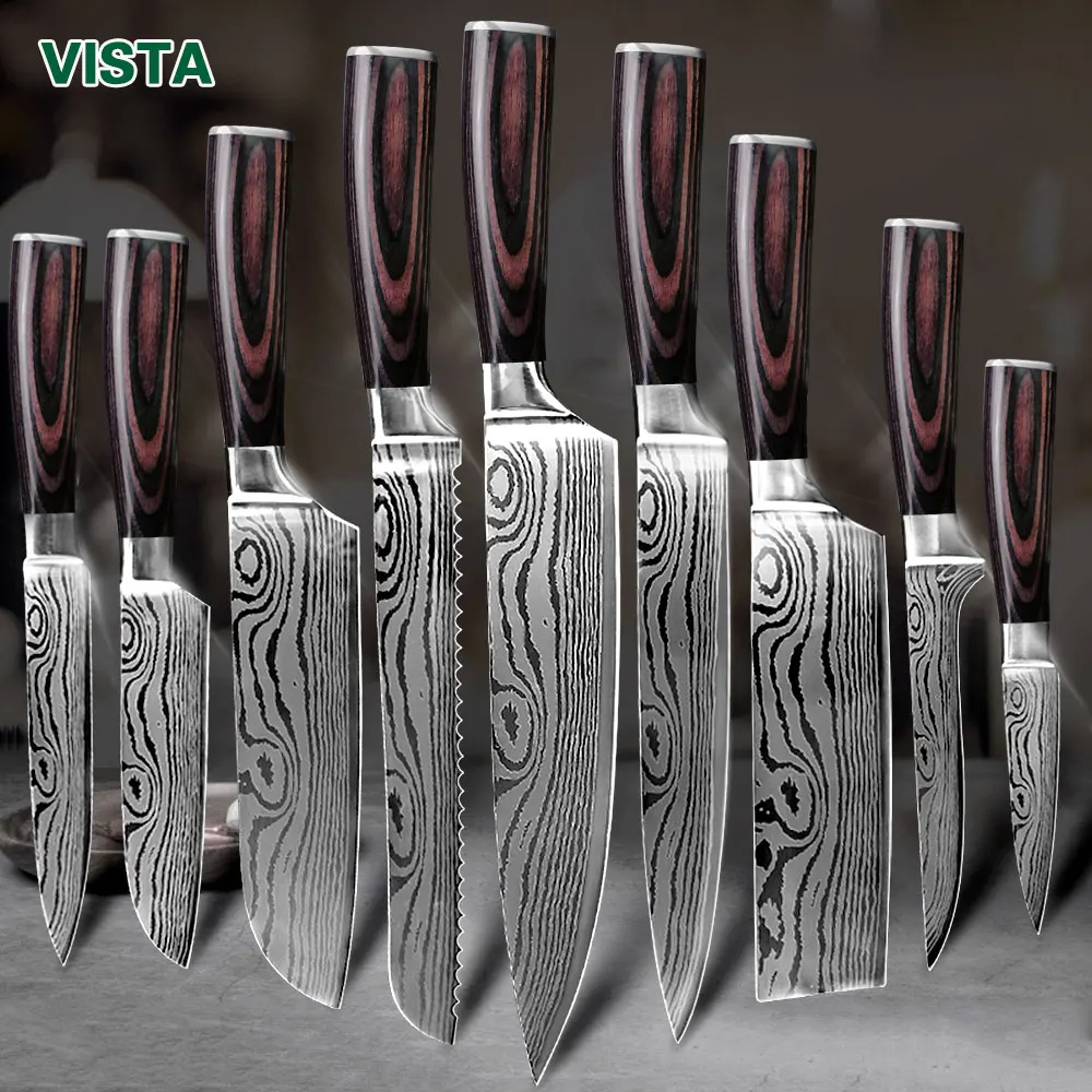 ✅ Кухонные ножи 1-9 шт. 7CR17 высокоуглеродистая Нержавеющая сталь дамасский рисунок Gyuto набор мясников нож сантоку поварской нож