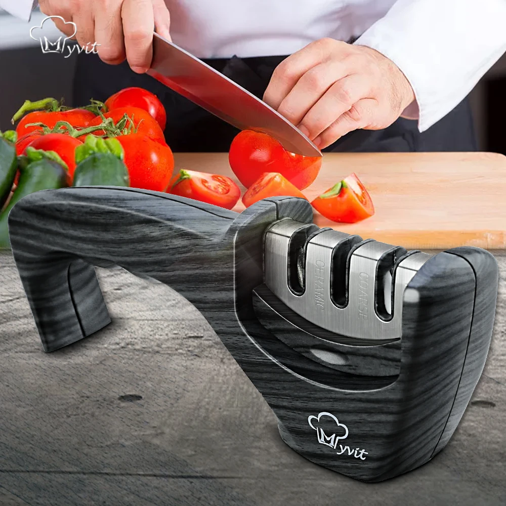 ✅ Точилка для ножей с 3 степенями заточки, (вольфрам, алмаз и керамика), точильный камень для стальных кухонных ножей, инструменты для шлифовки,...
