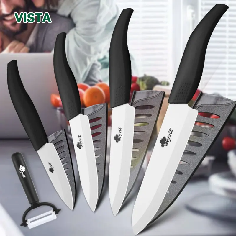 ✅ Керамические кухонные ножи, 3, 4, 5, 6, дюймов, набор ножей шеф-повара для приготовления пищи, овощечистка, лезвия из белого циркония, ручки разн...