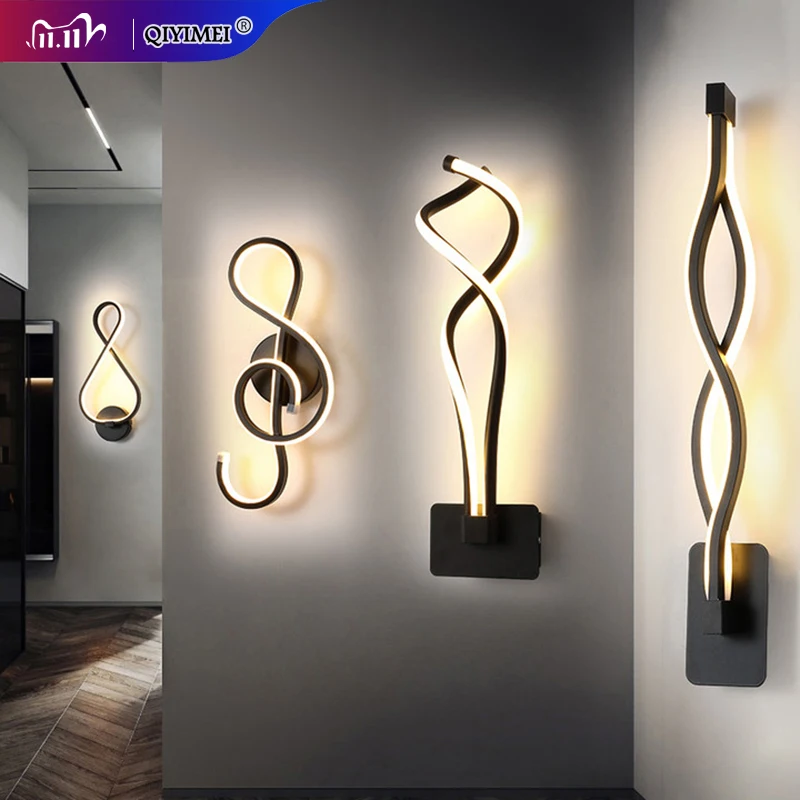 ✅ Современные минималистичные Настенные светильники для гостиной, спальни, прикроватная тумбочка, 16 Вт, AC96V-260V, LED Бра, черный, белый цвет, ламп...