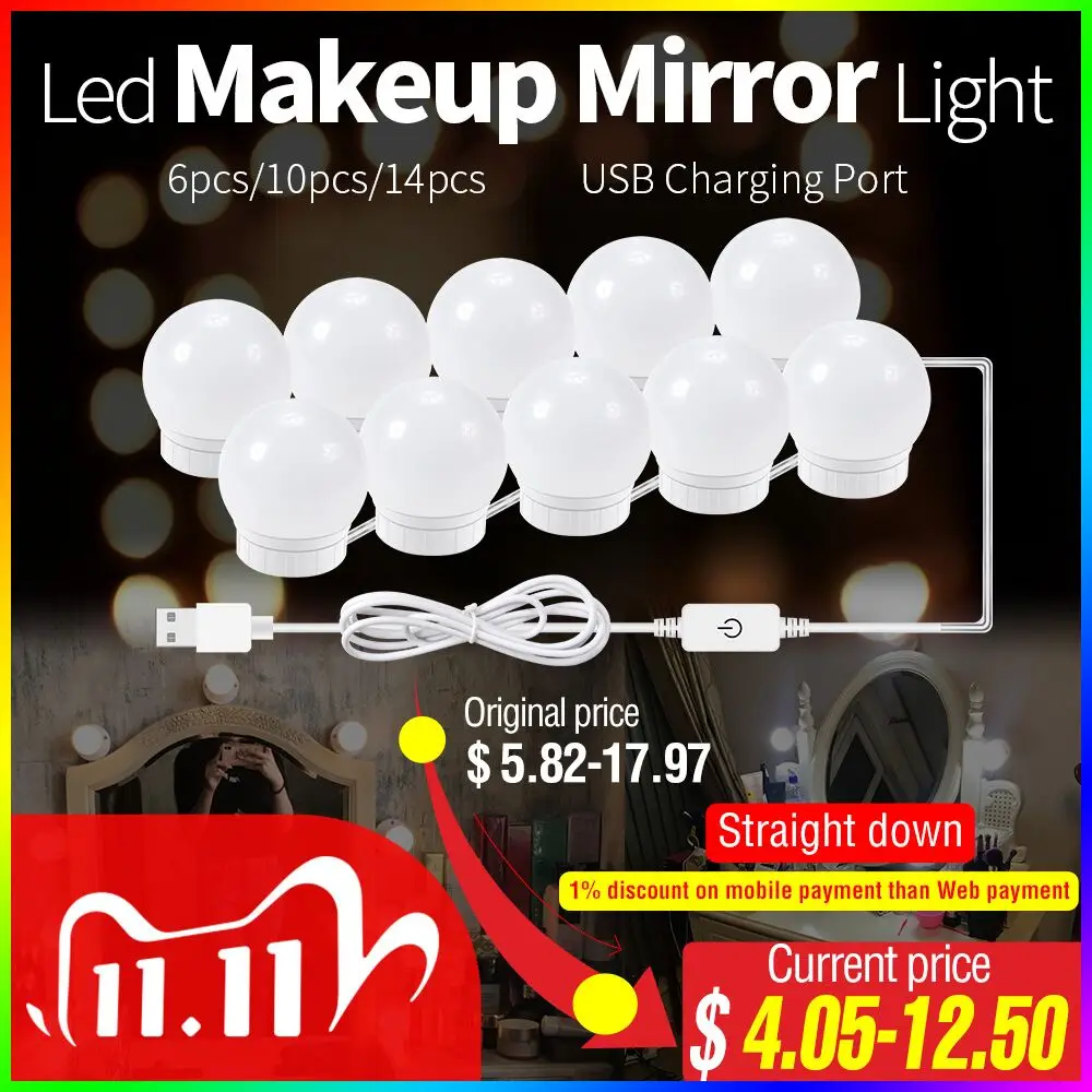 ✅ 5V (для нанесения макияжа) со светодиодной подсветкой по краю и зеркальный светильник лампочки Голливуд косметическое зеркало для макияжа с...