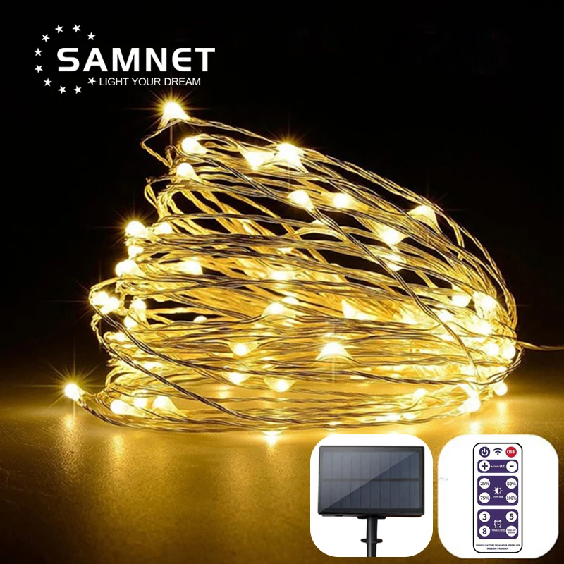 ✅ Медный провод шнура светильник с USB/солнечный Мощность Фея светильник 8 режимов IP65 Водонепроницаемый украшения светильник ing для Открытый сад патио