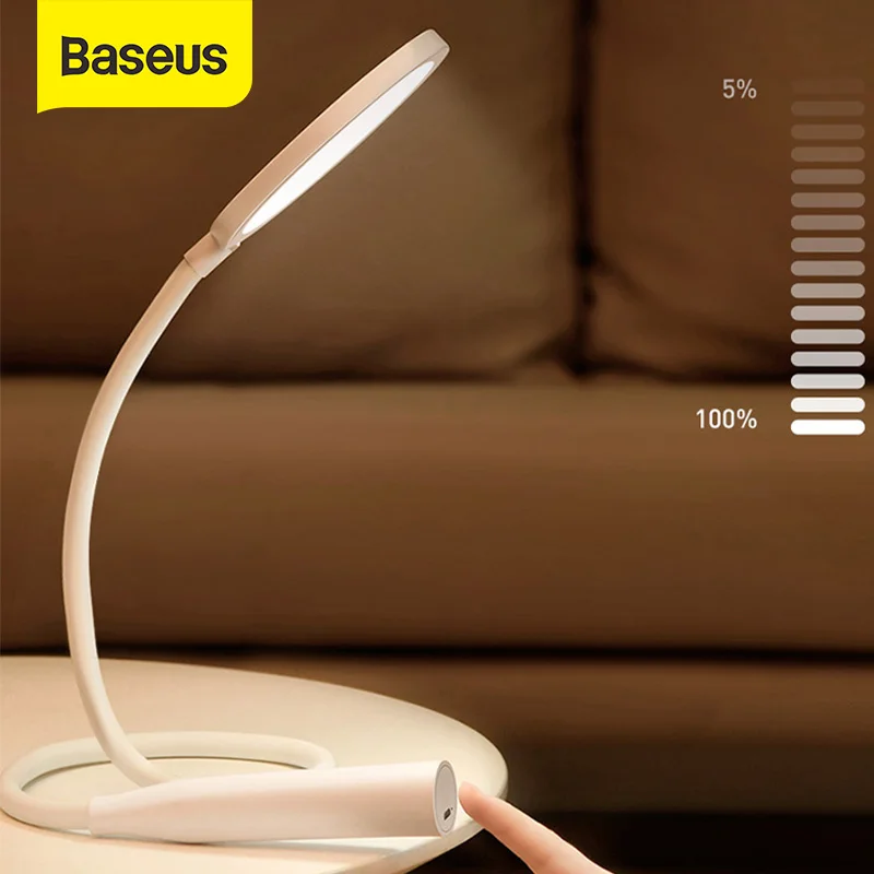 ✅ Baseus Складная Настольная лампа светодиодный настольная лампа Гибкая затемняемая Сенсорная лампа для защиты глаз-защита светильник для изучения Спальня Настольный светильник для чтения