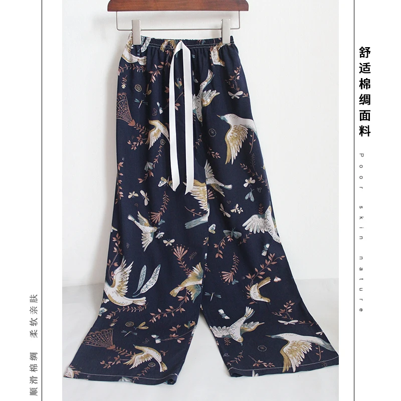 ✅ Новое летнее платье для детей одежда для сна Ночное для Для женщин пижамы с принтом свободные штаны для сна Full-Длина брюки вискозная Штапельная пряжа Lounge пижамные штаны домашняя одежда