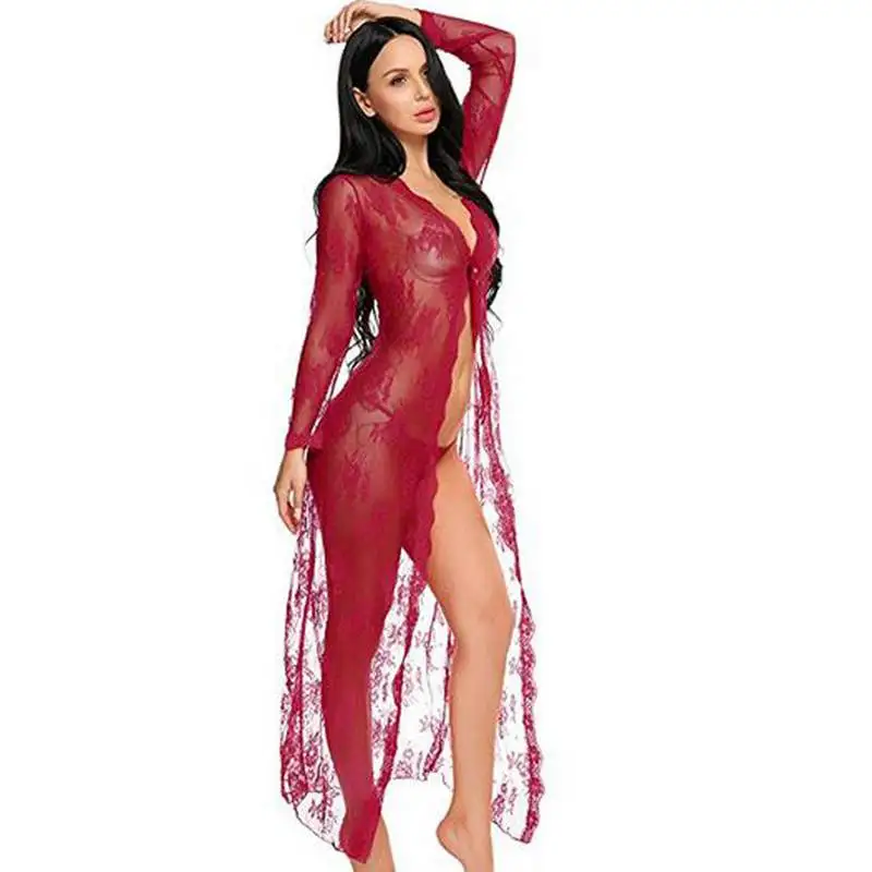✅ 2020 летний женский халат для сна, сексуальные ночные халаты с длинным рукавом, кружевное лоскутное платье, кимоно, халат, ночная рубашка, женская ночная одежда