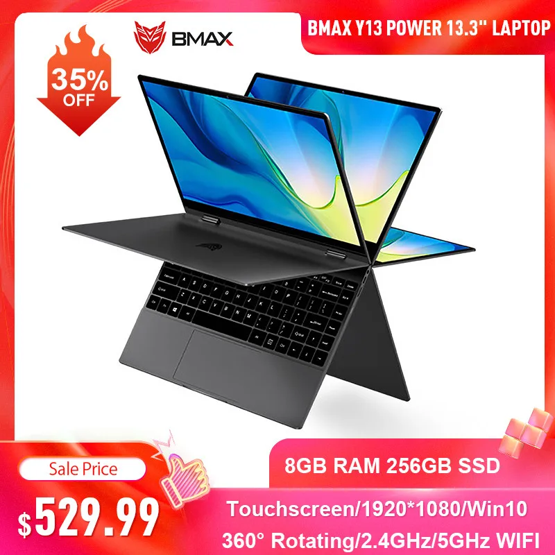 ✅ Ноутбук BMAX Y13 Power, 13,3 дюйма, Intel Core 8 ГБ ОЗУ 256 Гб SSD, сенсорный экран, Win10, вращение на 360 градусов, 1080P IPS, клавиатура для ноутбука с подсветкой
