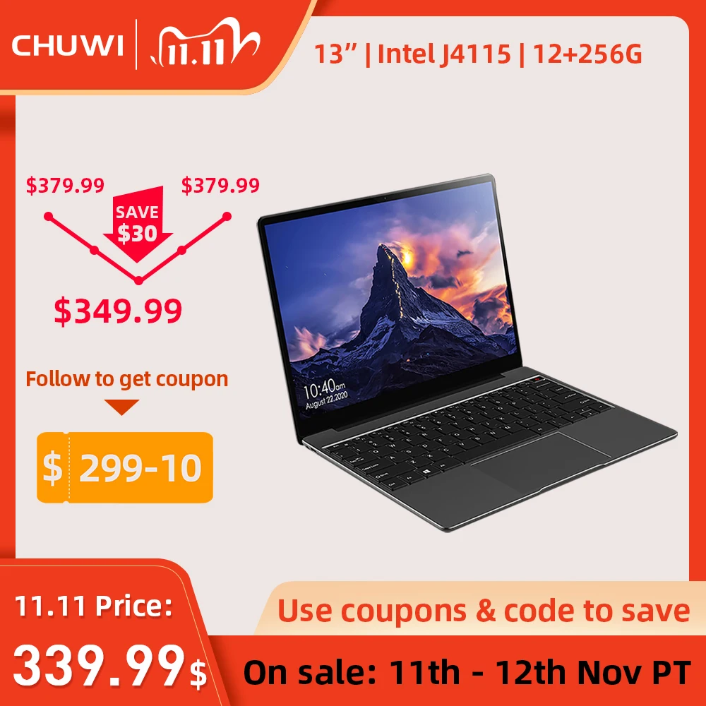 ✅ CHUWI оригинальный GemiBook 13 дюймов 2K IPS экран ноутбук Intel Celeron J4115 четырехъядерный 12 Гб RAM 256 ГБ SSD Windows 10 клавиатура с подсветкой