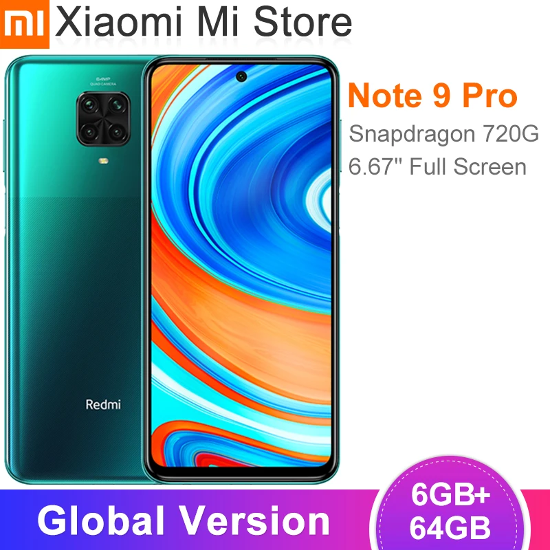 ✅ Смартфон Xiaomi Redmi Note 9 Pro, 6 ГБ ОЗУ 64 Гб ПЗУ, Snapdragon 720G, задняя камера 64 мп, 6,67 дюйма, сотовый телефон с NFC