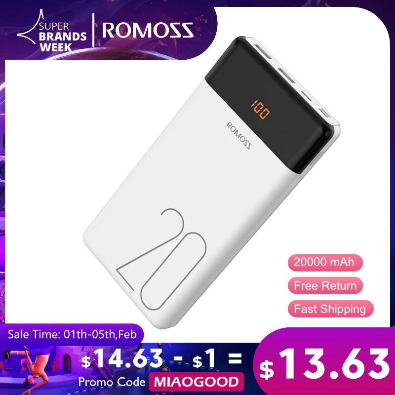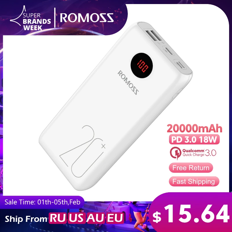 ✅ Внешний аккумулятор ROMOSS на 20000 мА · ч, 18 Вт, с поддержкой быстрой зарядки