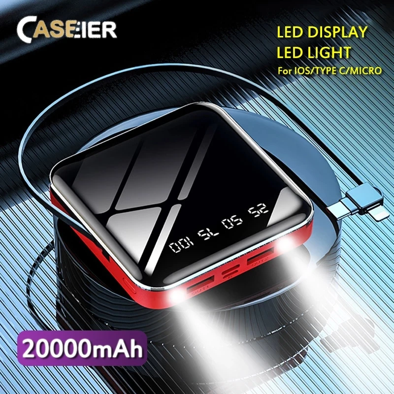 ✅ Внешний мини-аккумулятор CASEIER на 20000 мА · ч с кабелем и светодиодным фонариком
