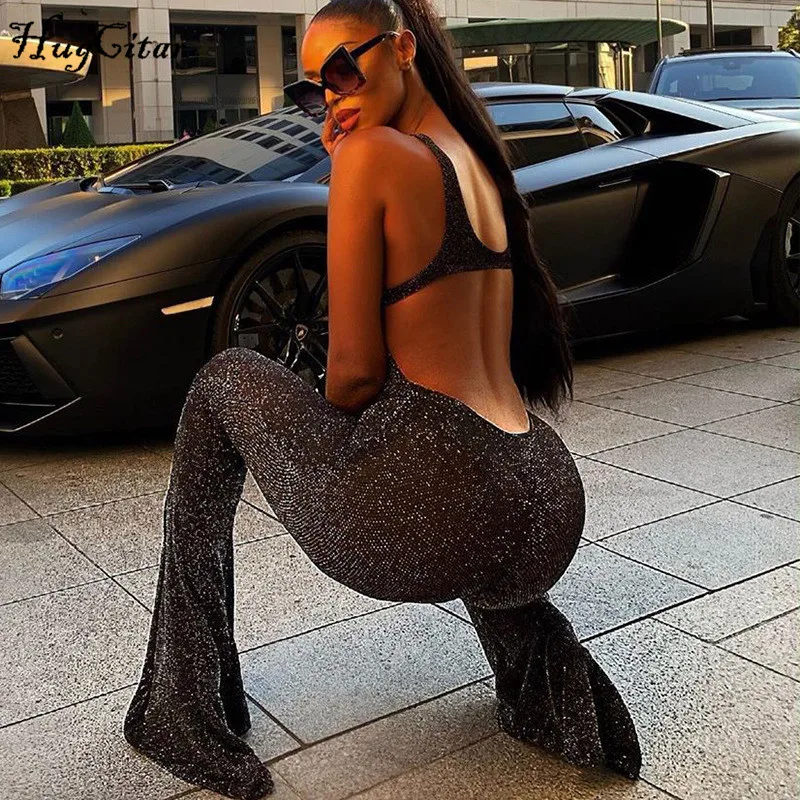✅ Hugcitar 2019 с открытой спиной выдолбить сексуальные комбинезон с расклешенными штанинами на осень-зиму женское уличная одежда Клубные вечерни...